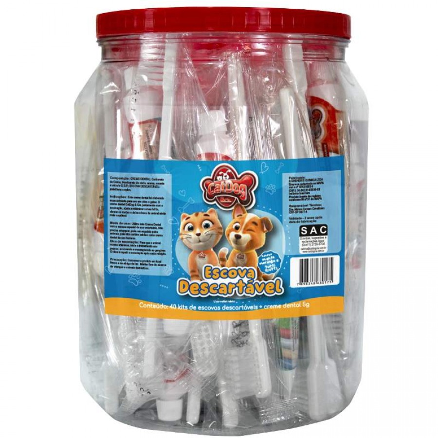 o Pote com 40 Escovas Dentais Descartáveis CatDog, profissionais têm à